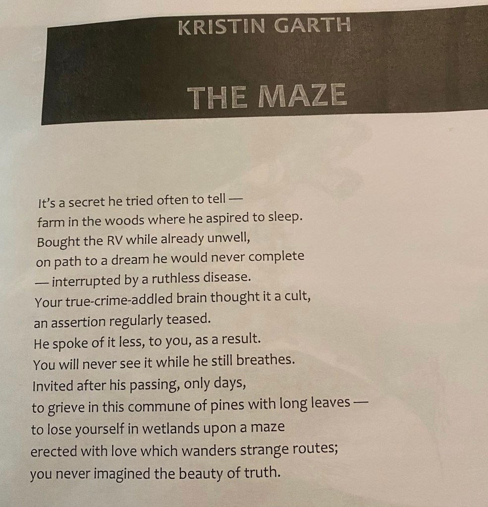 The Maze by Kristin Garth published in Prism Thread Share this: Click to share on X (Opens in new window) X Click to share on Facebook (Opens in new window) Facebook Like Loading...