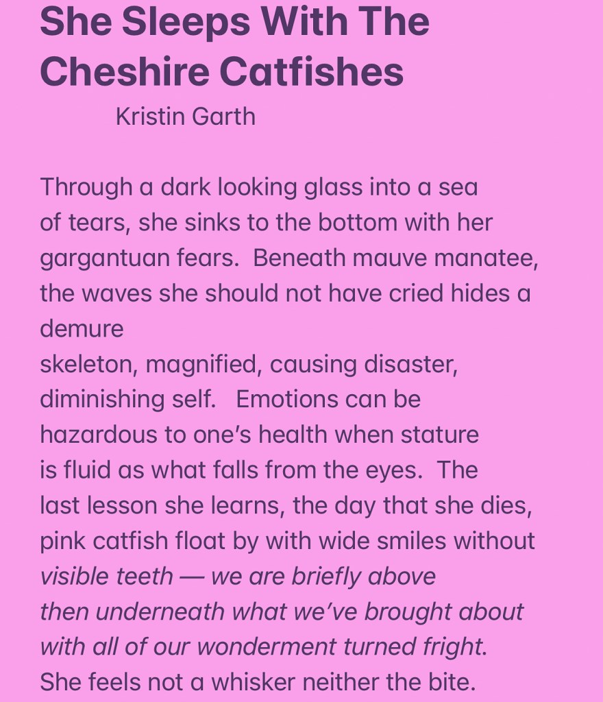 I’ve had death on the brain lately — how it comes for all of us, even fairy tale children we know and love. I wrote a poem recently called The Death of Alice in Wonderland, which was really about my own death I feel. How as you feel it, it draws you back to your childhood in a bizarre sort of way — with the knowledge and instincts of an adult but that childish wonder you knew outgrew. This is a second poem I just wrote about Alice’s potential demise — except that this one is more of an alternate reality. What if she had drowned in the pool of her tears — which she nearly did? This poem is a cautionary tale about letting our emotions get away with us. We ourselves can be the ones we most harm when they are out of check. I relate to this lesson so much having fallen prey to this many times in my life. I’m doing a lot better as of late — perhaps why it felt safe to explore the dark ramifications of losing self control in this poem. And yes I reference the godfather in the title. Because if Alice had died this way, it was an act of violence against herself — even if she didn’t mean it. I’m trying to avoid such kinds of behaviors these days.