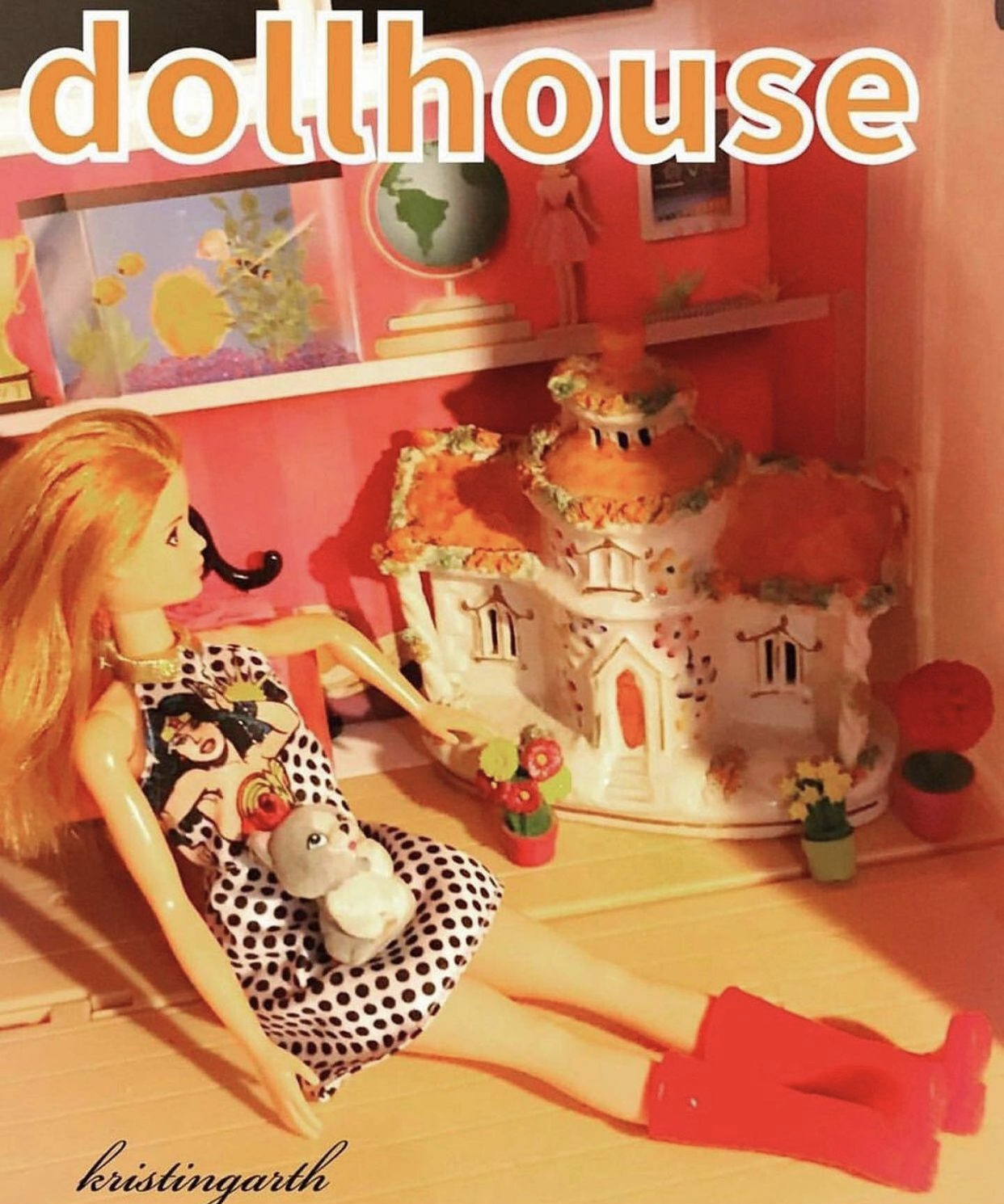 in the middle of a story. Horse in my cheek, soft saliva pools beneath my tongue. The dolls mark plastic candles each day, walk on bathhouse slippers I sewed from cotton balls. Their light bodies make no sound, sometimes they crow when I tell stories especially divine. A clapping