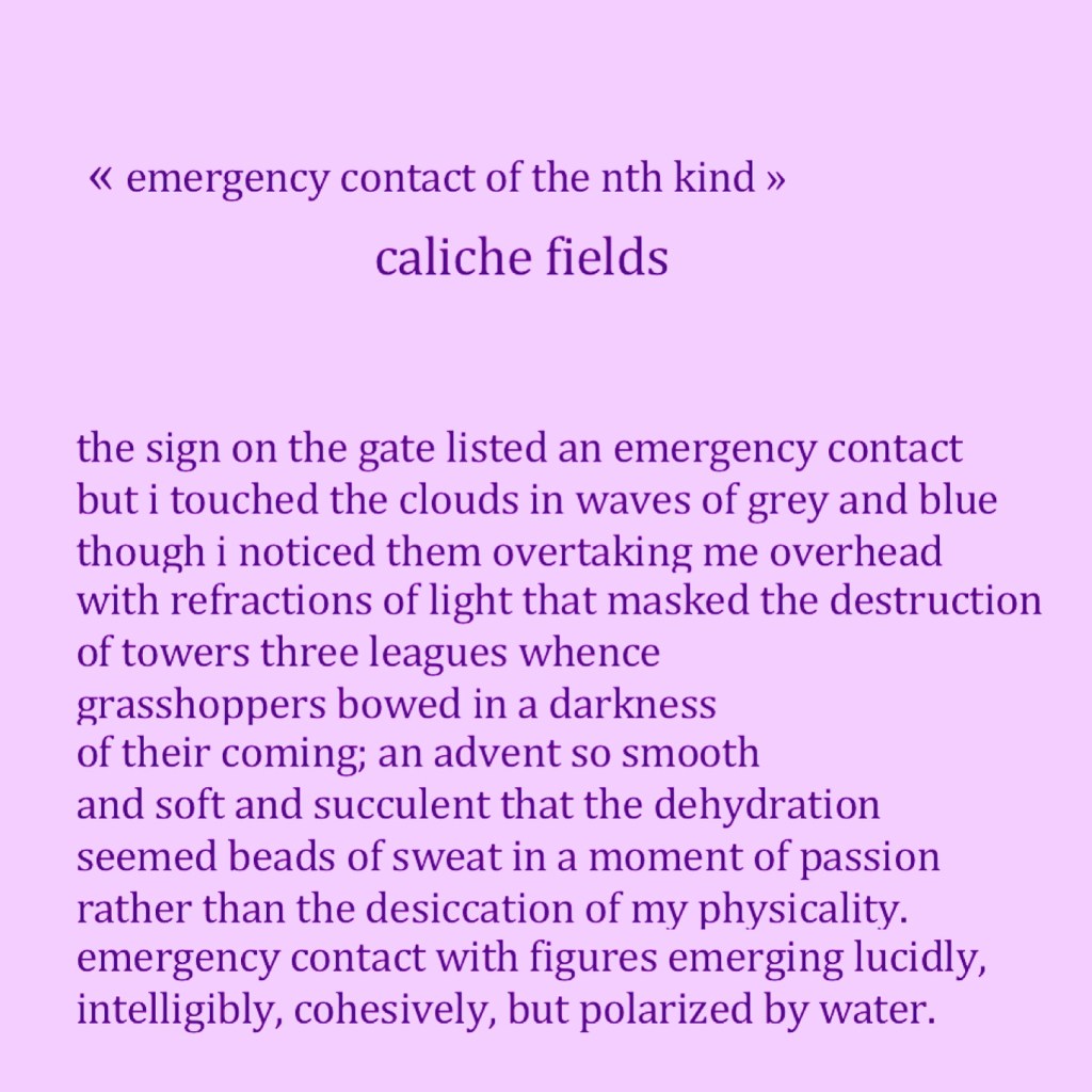 @calichefields lives upon the prehistoric ruins of the permian basin; an ma candidate specializing in the poetry of sor juana inés de la cruz. they’re rooted in interdisciplinary natures and their work dwells within the kitchen, its sciences and philosophies.